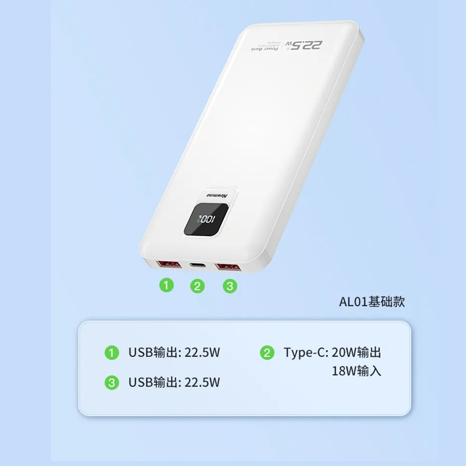 پاوربانک نیوماین مدل AL-01 با ظرفیت 10.000 میلیآمپر ساعت، یک گزینه عالی برای تأمین انرژی دستگاههای الکترونیکی شما در هر زمان و مکان است. این پاوربانک، با طراحی زیبا و مقاوم خود، به راحتی قابل حمل بوده و امکان شارژ دستگاههایی نظیر گوشیهای هوشمند و تبلتها را فراهم میکند. این پاوربانک مجهز به 2 پورت USB و 1 پورت Type-C می باشد. این پاوربانک این امکان را میدهد که به طور همزمان دو دستگاه را شارژ کنید. ویژگیهای ایمنی آن شامل حفاظت در برابر ولتاژ اضافی، اتصال کوتاه و شارژ بیش از حد است که امنیت دستگاههایتان را تضمین میکند. نمایشگر عددی تعبیه شده روی پاوربانک میزان شارژ باتری آن را به نشان می دهد. این پاوربانک با عملکرد قابل اعتماد و طراحی مدرن، برای استفادههای روزانه و شرایط اضطراری گزینهای مناسب محسوب میشود. این پاوربانک دارای توان خروجی تا 22.5 وات و تکنولوژی PD Fast Charge می باشد.