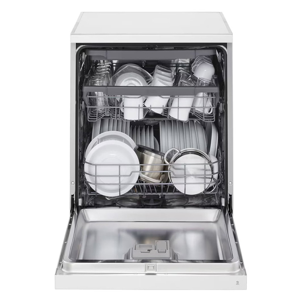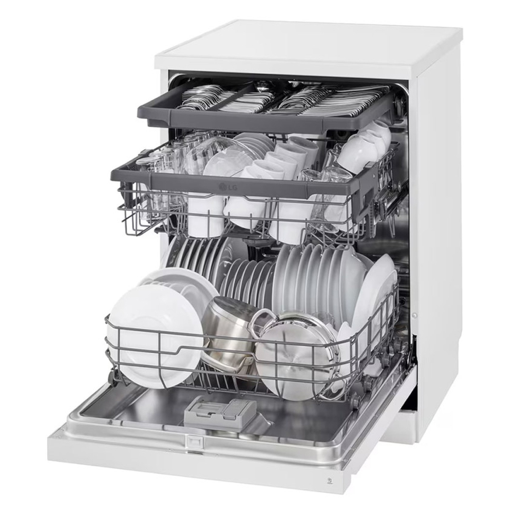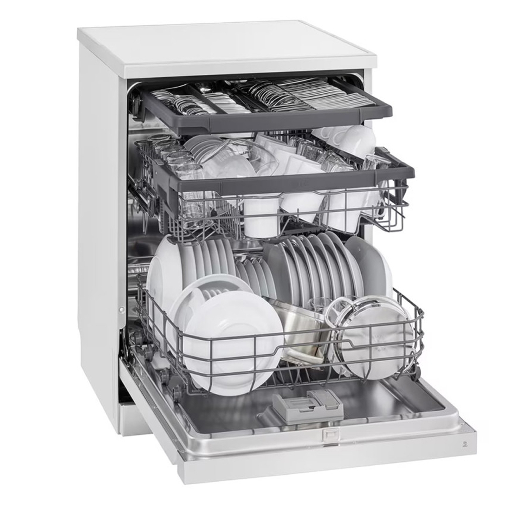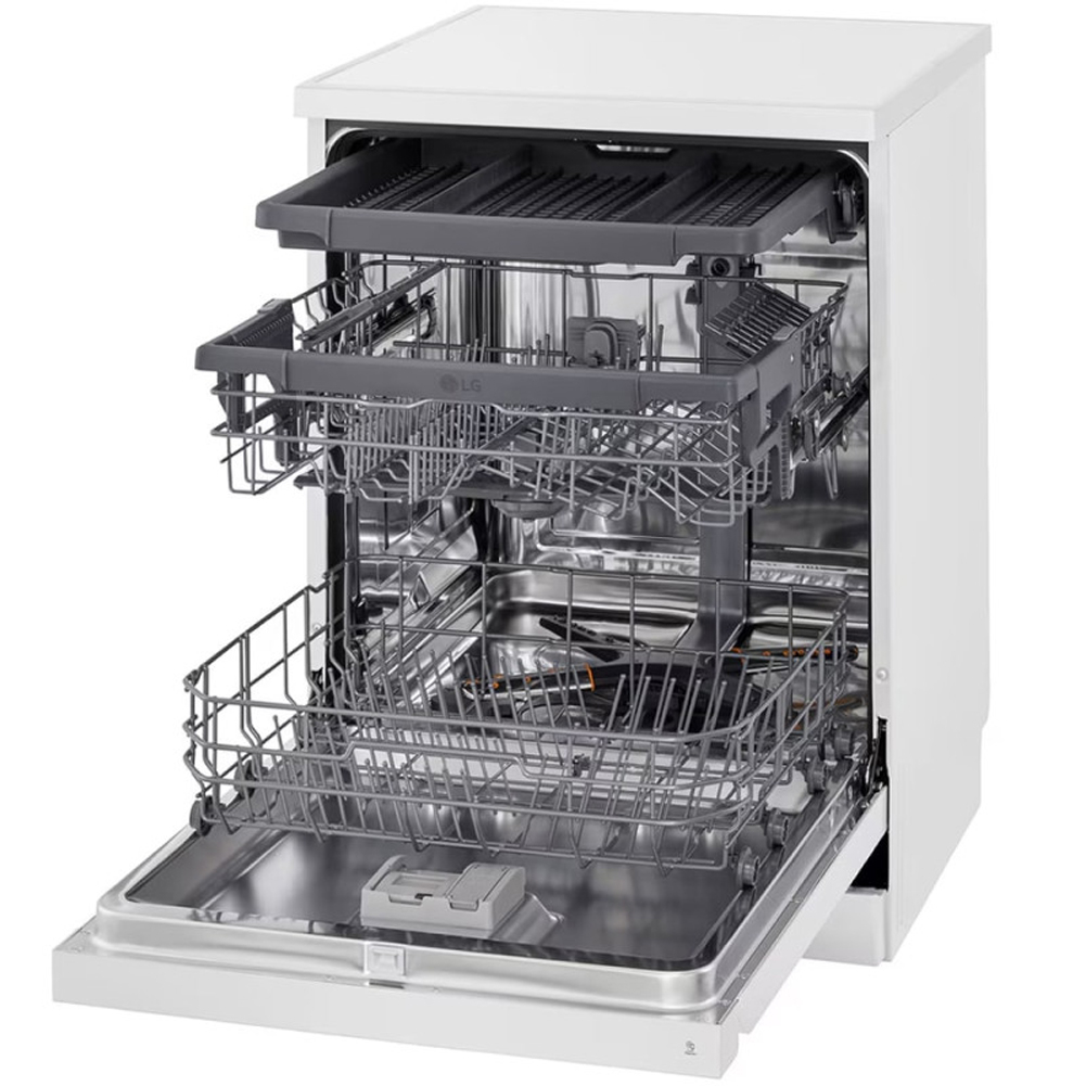 - سایر ویژگیهادارای برنامه Download Cycle برای دانلود برنامه های شستشوی جدیدتر / قابلیت Extra Dry (ExtraDry) برای خشک کردن بهتر ظروف با دمای بالا / قابلیت Dual Zone برای شستشوی ظروف بسیار کثیف و ظروف روزمره به صورت هم زمان / قابلیت High temp برای شستشو با آب بسیار داغ / قابلیت Half Load برای شستشوی تعداد کمی از ظروف با صرفه جویی در مصرف انرژی و آب / قابلیت Control Lock برای قفل کردن پنل کنترلی ماشین ظرفشویی / قابلیت Energy Saver برای شستشوی ظروف روزمره با صرفه جویی در مصرف انرژی و آب / قابلیت Delay Start برای تاخیر در زمان شروع شستشو از 1 تا 12 ساعت / دارای صفحه نمایش LED لمسی / دارای نماد پر کردن مجدد نمک (Salt Refill Icon) / دارای قیف (Funnel) برای پر کردن مخزن نمک ماشین ظرفشویی / دارای قابلیت Machine Clean Reminder جهت یادآوری تمیز کردن دستگاه / پشتیبانی از برنامه LG ThinQ برای کنترل و مدیریت ماشین ظرفشویی از طریق موبایل (مخصوص موبایل های اندرویدی و iOS)